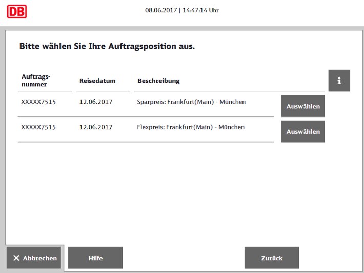- Hinterlegung zur Abholung in DB Reisezentren/Agenturen