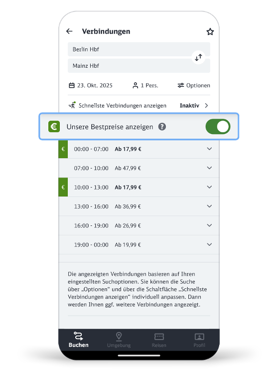 - Bestpreissuche: Finden Sie immer ein günstiges Ticket.