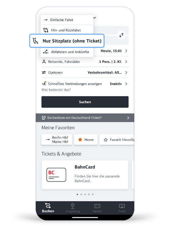 - Sitzplatzreservierung: Reservieren Sie Ihren Sitzplatz direkt bei der Ticketbuchung oder auch nachträglich.
