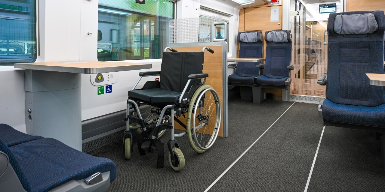 Es stehen drei Plätze für Rollstuhlfahrer mit elektrisch-höhenverstellbaren Tischen zur Verfügung.