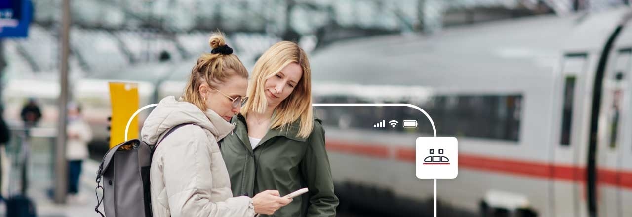 Den Wagenreihungsplan in digitaler Form finden Sie am Reisetag in der App DB Navigator in den Fahrtinformationen in den Verbindungsdetails.