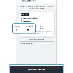 Nachdem Wagen- und Sitzplatznummer ermittelt wurden, klicken Sie auf den Button „Jetzt einchecken“, um den Komfort Check-in abzuschließen.